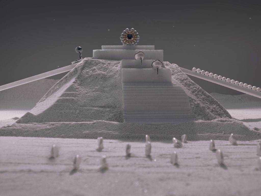 A visual narrative of the creation and death of an extraterrestrial civilisation. From the boom of birth, to the ruins left behind, the nocturnal realms is the staging of iconic pieces of a high-end jewellery collection.